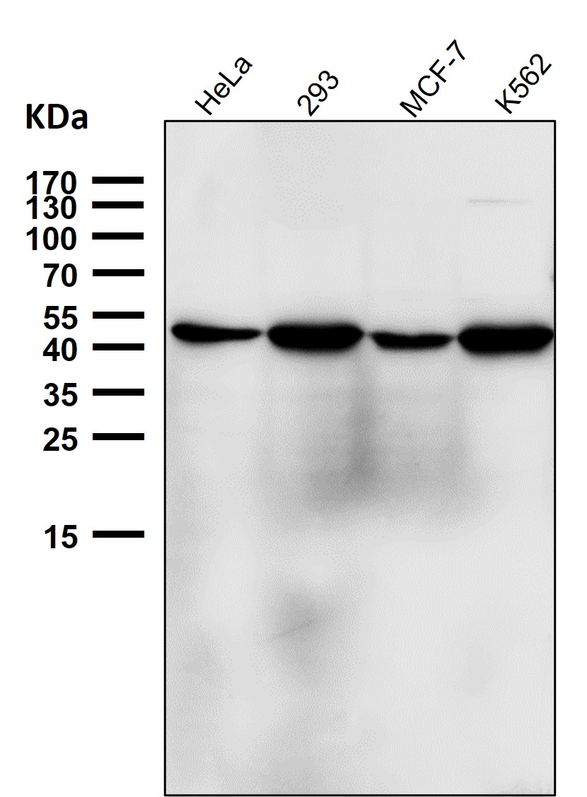 | WB Predicted band size | Calculated MW: 41 kDa ; Observed MW: 45 kDa |
