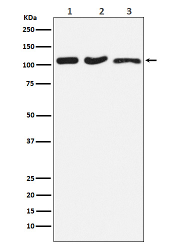 | WB Predicted band size | Calculated MW: 94 kDa ; Observed MW: 100 kDa |