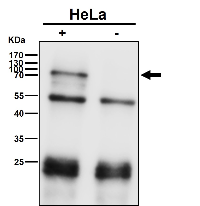 | WB Predicted band size | Calculated MW: 61 kDa ; Observed MW: 70 kDa |