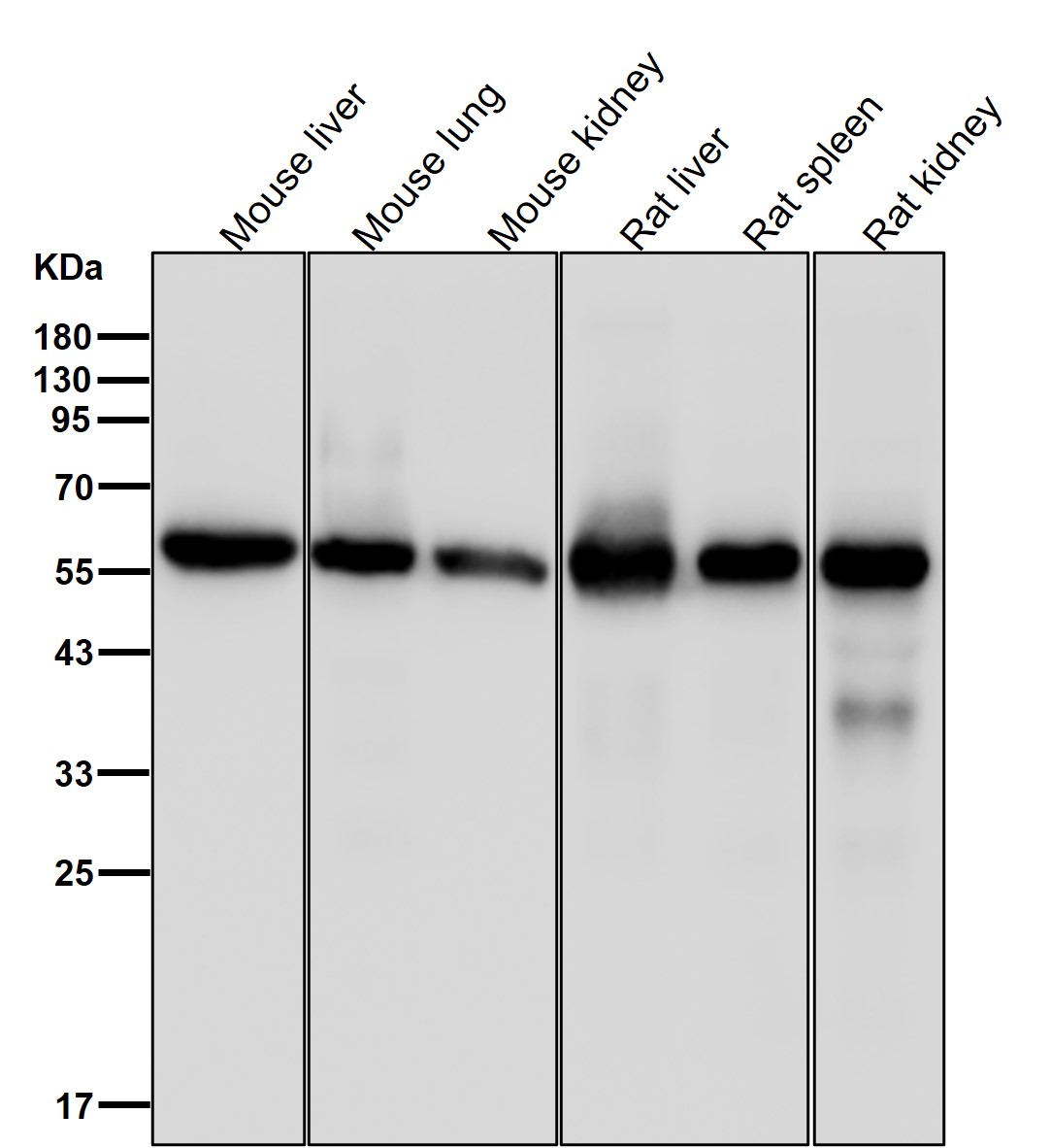 | WB Predicted band size | Calculated MW: 60 kDa ; Observed MW: 56 kDa |