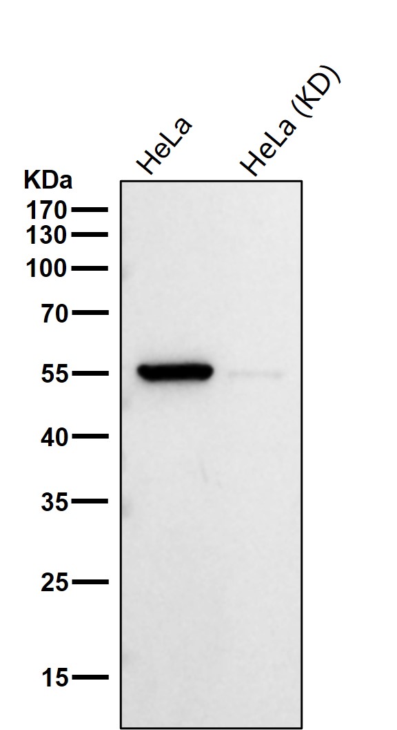 | WB Predicted band size | Calculated MW: 52 kDa ; Observed MW: 55 kDa |