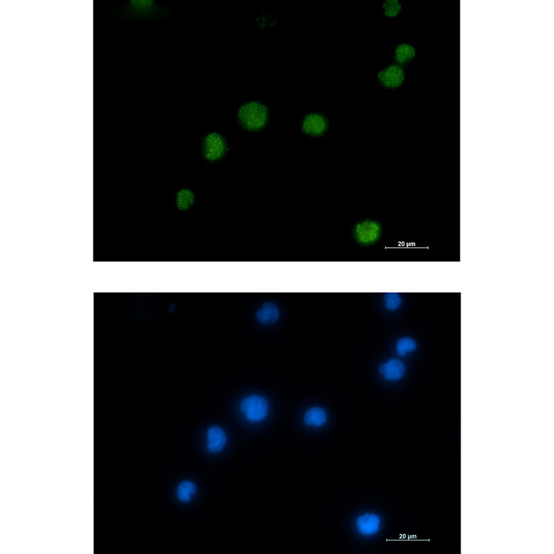 HMGB2 antibodies are critical tools for investigating its biological functions and disease associations. These antibodies are widely used in techniques like Western blotting, immunohistochemistry (IHC), immunofluorescence (IF), and chromatin immunoprecipitation (ChIP) to detect HMGB2 expression, localization, and DNA-binding activity. Research has linked HMGB2 overexpression to cancer progression (e.g., glioblastoma, colorectal, and ovarian cancers), where it promotes tumorigenesis, metastasis, and chemoresistance. It also participates in inflammatory responses and autoimmune disorders by facilitating cytokine release.