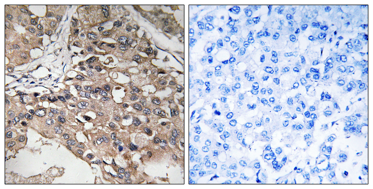 TAK1 antibodies are essential tools for detecting and quantifying TAK1 expression, activation, and interactions in research. They enable techniques such as Western blotting, immunoprecipitation, immunofluorescence, and immunohistochemistry. These antibodies often target specific phosphorylation sites (e.g., Thr184/187) or structural domains to distinguish active versus inactive TAK1. High-quality TAK1 antibodies with validated specificity are critical for studying its role in signaling networks, drug discovery, and disease mechanisms. Recent studies also explore TAK1's context-dependent functions, such as its dual pro-survival or pro-apoptotic roles in different cancers, highlighting the antibody's utility in advancing mechanistic and translational research.