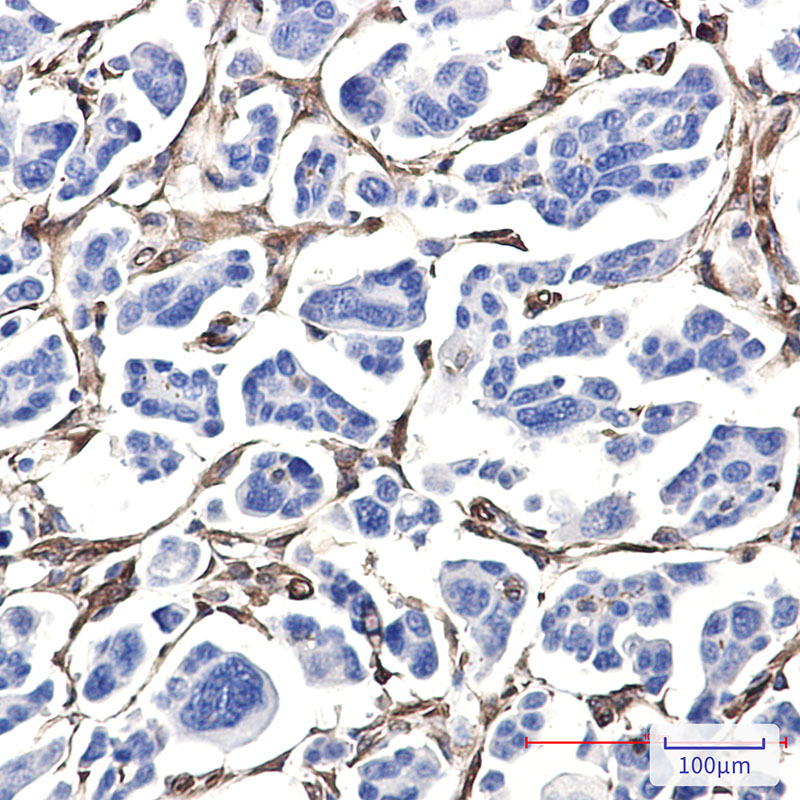 In normal tissues, fascin expression is generally low but becomes significantly upregulated in various cancers, including colorectal, breast, and pancreatic carcinomas. Overexpression correlates with aggressive tumor behavior, poor prognosis, and metastatic potential. Fascin antibodies are thus widely utilized in research to assess fascin levels via techniques like Western blotting, immunohistochemistry (IHC), and immunofluorescence (IF). They help identify fascin's role as a potential biomarker for cancer progression or a therapeutic target.