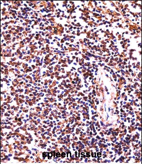 HCLS1 (Hematopoietic cell-specific Lyn substrate 1), also known as HS1. is a cytosolic protein predominantly expressed in hematopoietic cells. It plays a critical role in regulating intracellular signaling, cytoskeletal reorganization, and immune cell functions. Structurally, HCLS1 contains an N-terminal Lyn-binding domain, a central helical region, and a C-terminal SH3 domain, enabling interactions with signaling molecules like Lyn kinase and WASp (Wiskott-Aldrich syndrome protein). These interactions facilitate its involvement in B-cell and T-cell receptor signaling, cell migration, adhesion, and apoptosis.
