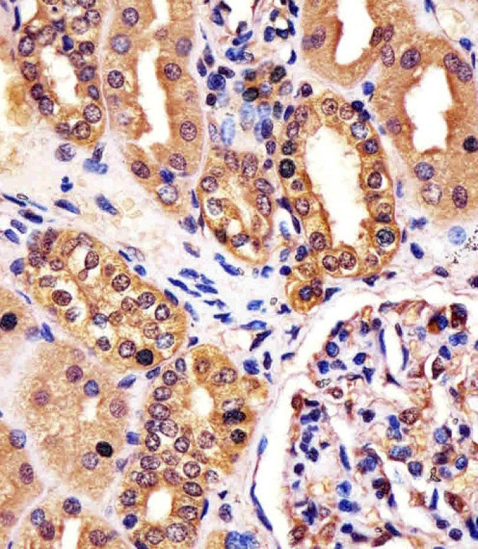 The RNF7 (N-term) antibody is designed to target the N-terminal region of RNF7 (Ring Finger Protein 7), a component of the E3 ubiquitin ligase complex. RNF7. also known as SAG (Sensitive to Apoptosis Gene), plays a critical role in the ubiquitin-proteasome system by facilitating substrate recognition and polyubiquitination, marking proteins for degradation. It is involved in diverse cellular processes, including oxidative stress response, DNA damage repair, and apoptosis regulation. RNF7 interacts with Cullin family proteins to form functional E3 ligase complexes, such as CRL5 (Cullin-RING ligase 5), influencing pathways like NF-κB signaling and tumorigenesis.