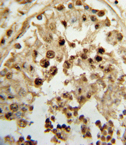 The HSD17B3 antibody targets 17β-hydroxysteroid dehydrogenase type 3 (HSD17B3), a key enzyme in the biosynthesis of testosterone from androstenedione. Expressed primarily in the testes, HSD17B3 catalyzes the reduction of androstenedione to testosterone, a critical step in male sexual development and function. Mutations in the HSD17B3 gene are linked to 17β-HSD3 deficiency, a rare autosomal recessive disorder characterized by undervirilization in 46.XY individuals due to impaired testosterone synthesis.